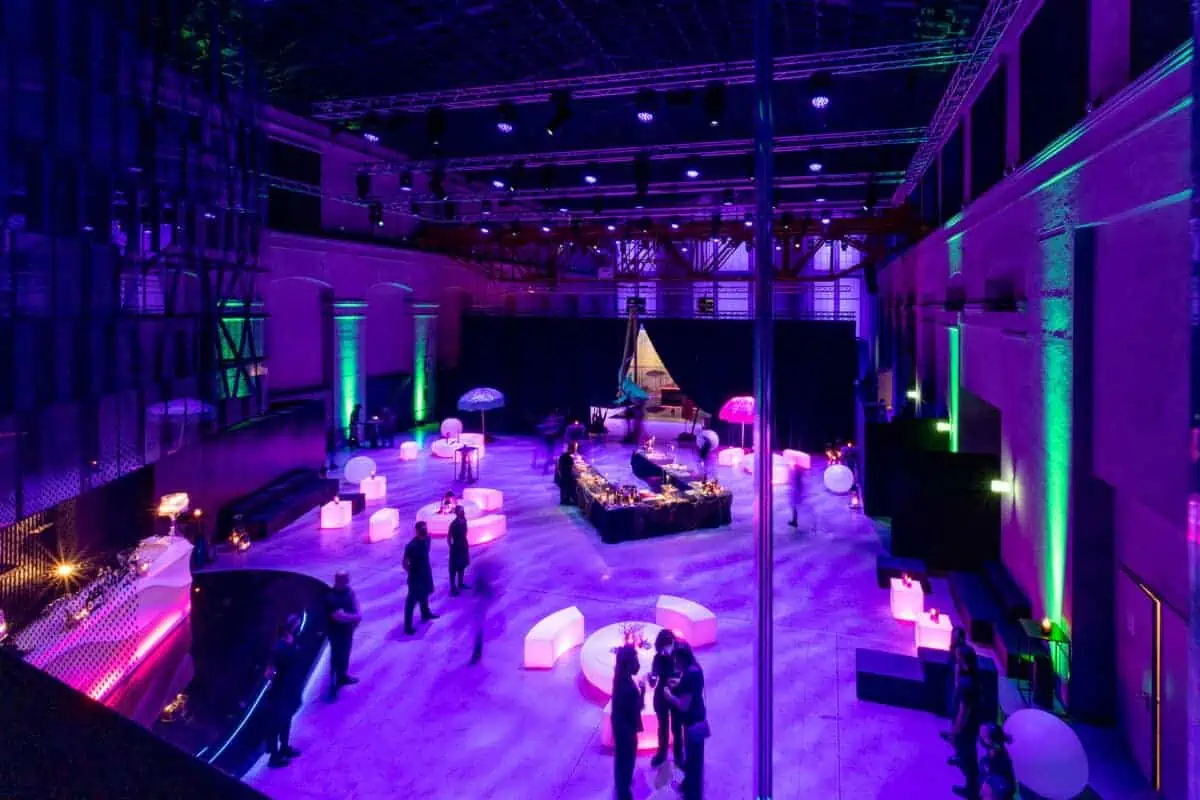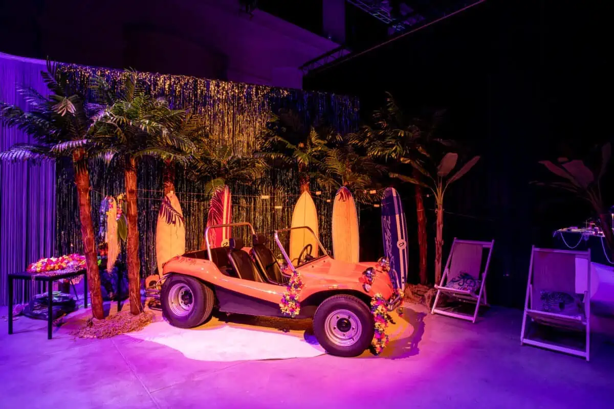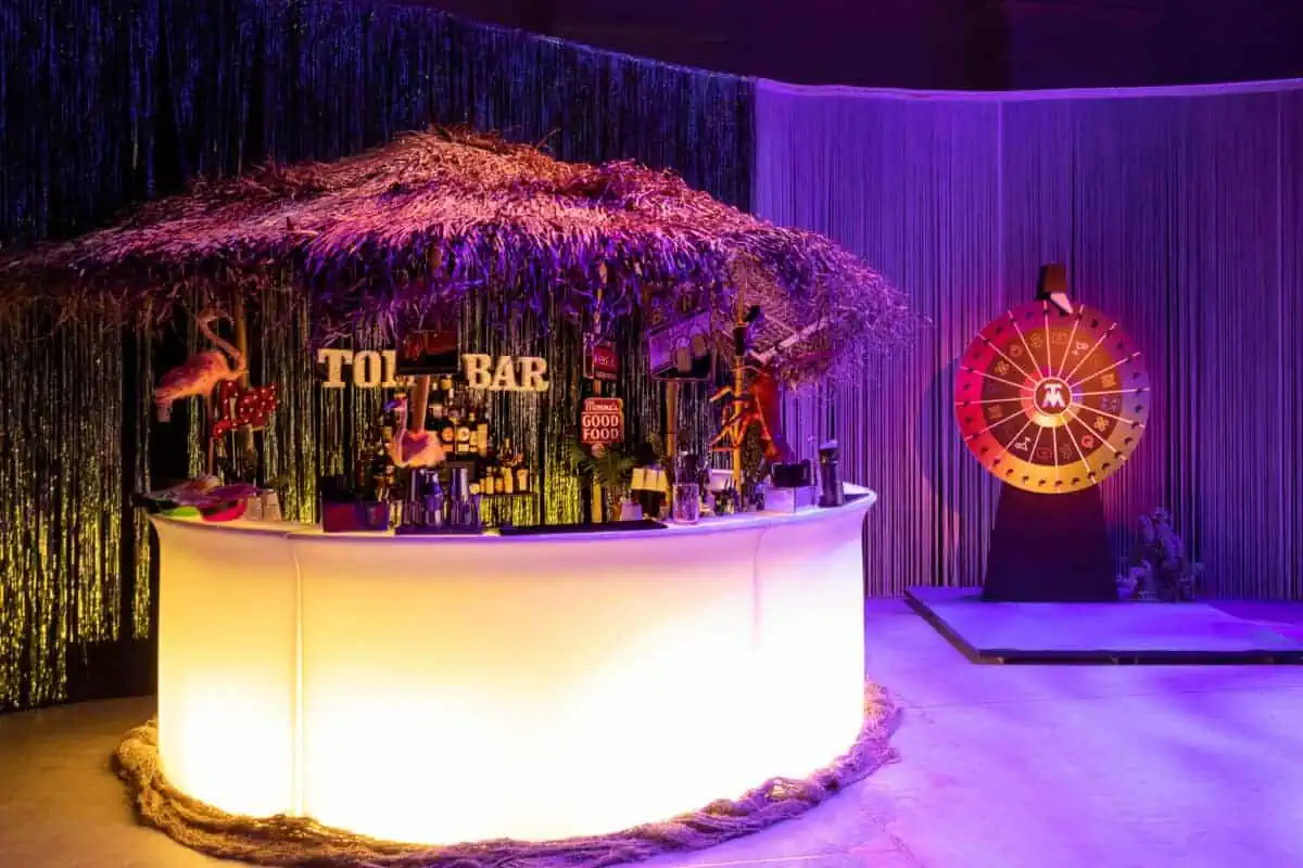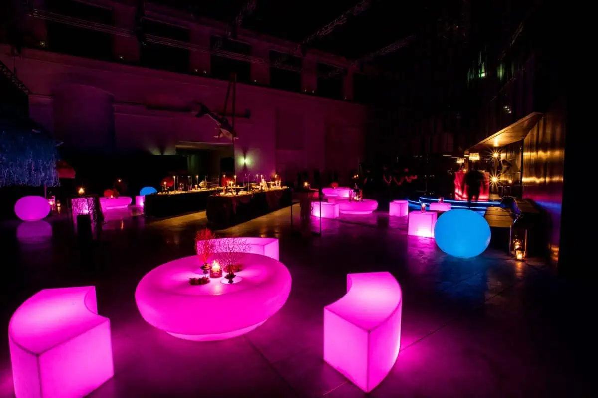 Per questa festa di compleanno organizzata presso La Centrale – Centro Congressi Lavazza, su richiesta dell’agenzia abbiamo realizzato un’ambientazione a tema hawaiiano ma in chiave moderna. A corredo dei nostri arredi luminosi abbiamo utilizzato palme e canne di bambu. Il risultato lo vedete dalle foto.
