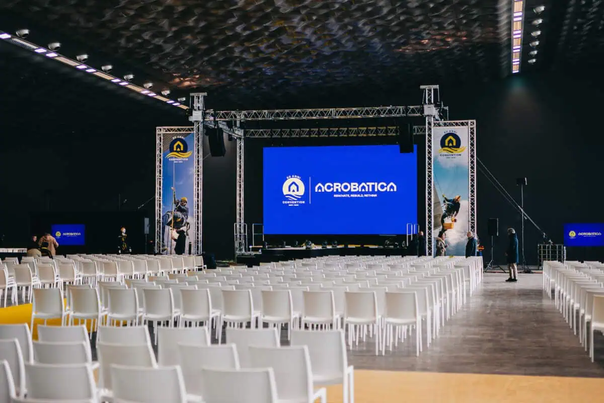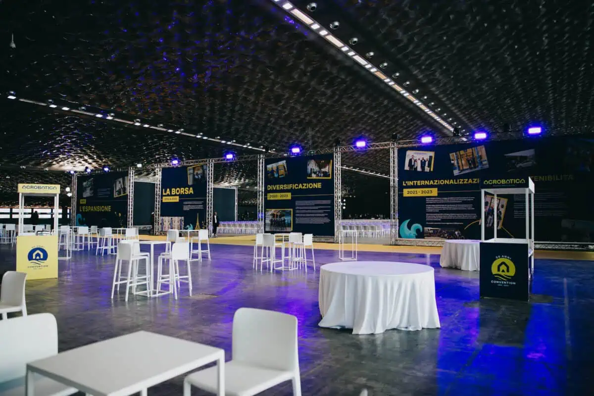 10.000 mq di allestimento per oltre 1600 ospiti: per festeggiare i 30 anni di Edilizia Acrobatica, @mszlab ha progettato e organizzato una splendida convention al Padiglione Blu del Porto Antico di Genova, per la quale abbiamo prestato tutto il nostro supporto logistico e un’imponente mole di arredi.