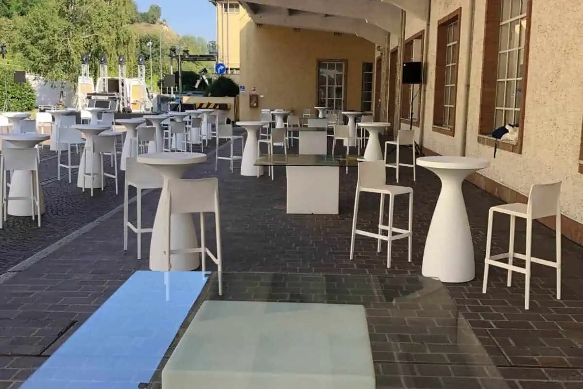 Oltre 2.000 partecipanti per questo family in azienda, iniziato il pomeriggio, con un allestimento total white, realizzato con set di sedute lounge con ombrelloni e standing table con sgabelli. Calato il sole abbiamo acceso gli arredi luminosi, cambiando faccia all’allestimento e dando luce dove serve, concerto e open-bar hanno fatto il resto, rendendo l’evento memorabile. Noleggio arredi per family day aziendali.